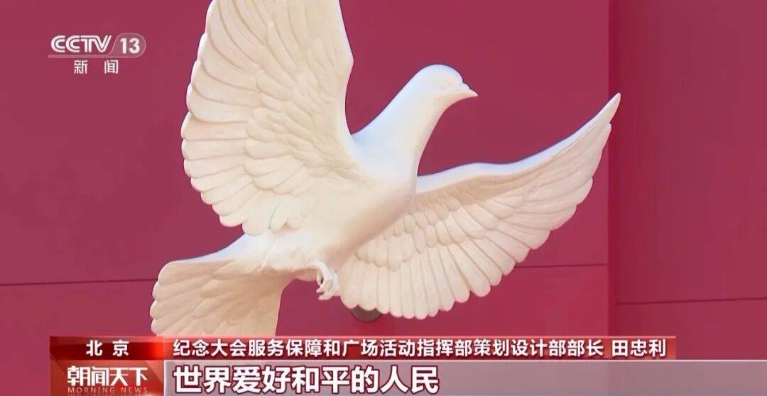 田忠利:14只和平鸽,也是这次年号台设计的画眼。代表了亿万中华儿女、世界爱好和平的人民共同追求的和平、守望的和平。