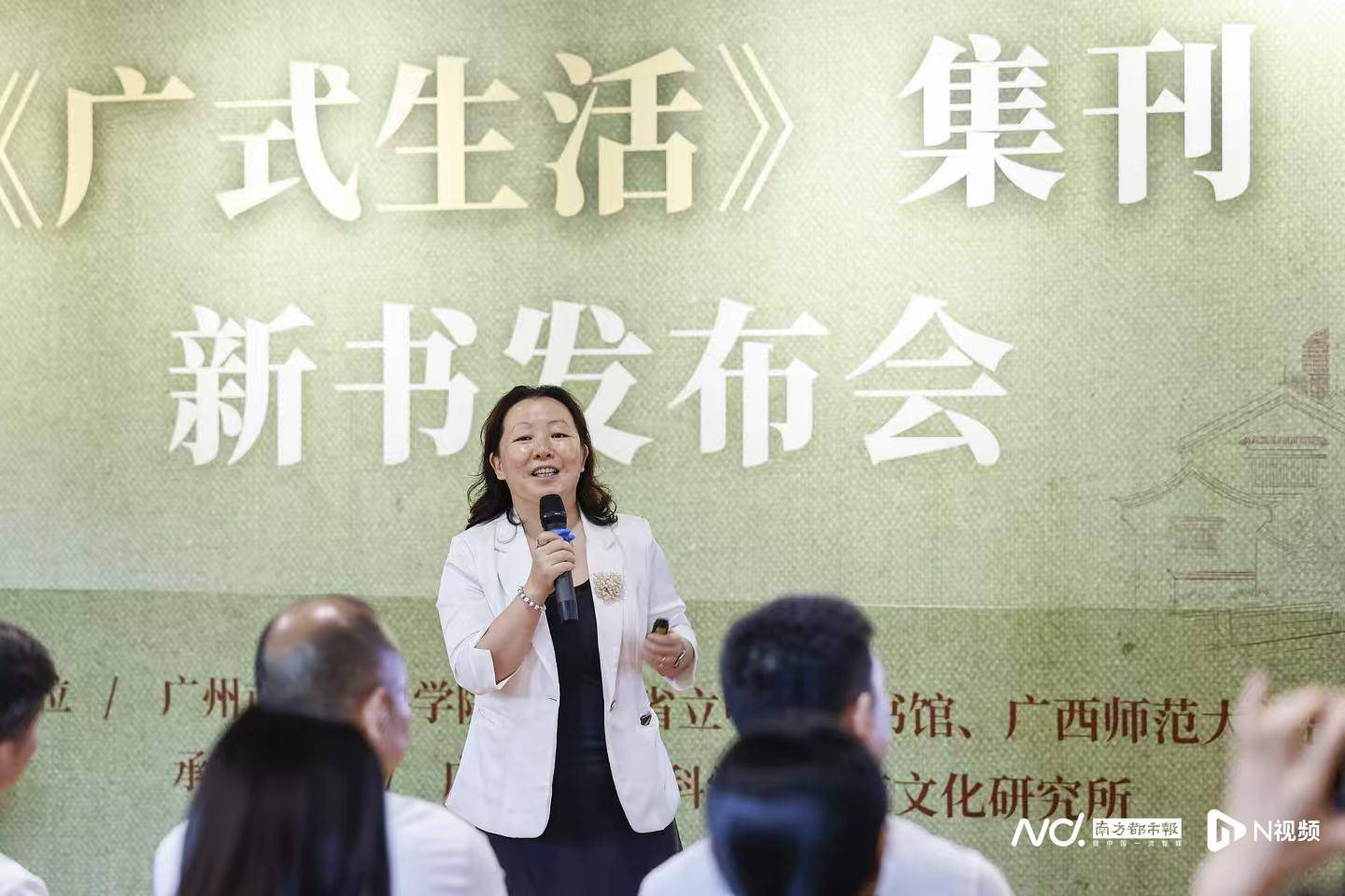 她介绍首刊编辑理念及主要内容,强调主创团队将连续编撰出版《广式生活》集刊,共收录18篇学术文章和30幅城市照片,以文字厚度和图像宽度展现广式生活变迁和魅力,致力于以“小切口、大共鸣”展示岭南地区的人文风貌和精神气质,自出版以来受到广东学术界、实务界高度关注,引发读者广泛共情与共鸣。