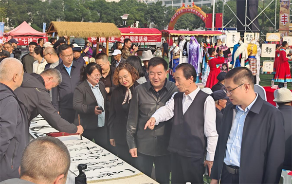 在“月映河湟”传统技艺展示区,两县区的特色月饼整齐陈列,散发出诱人的香气,让人垂涎欲滴。与此同时,书法家们现场即兴创作中秋诗词和爱国主题作品,笔走龙蛇间,一幅幅充满文化韵味的书法作品跃然纸上。现场还设置了“大众书写台”,供群众临摹互动,让大家在书写中感受中华传统文化的魅力。此外,土族、回族等传统服饰也在展示区亮相,工作人员详细讲解服饰的文化内涵,并开放试穿拍照打卡环节。市民们纷纷穿上传统服饰,拍照留念,在沉浸式体验中加深了对中秋文化内涵的理解。